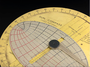 Parmi les compas solaires modernes utilisés pendant la seconde guerre mondiale, c’est sans doute le modèle le plus simple, et le plus efficace pour cet usage.